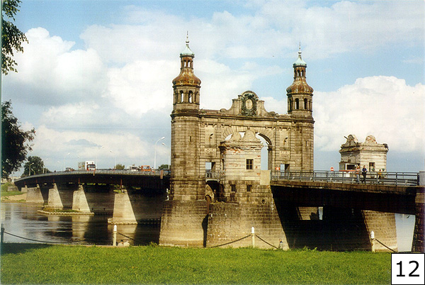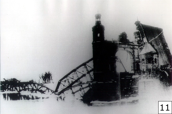 11. 22 октября 1944 года мост Королевы Луизы был взорван немецкими саперами во избежание захвата его Советской Армией. Am 22.Oktober 1944 wurde die Koenigin-Luise-Bruecke von deutschen Pionieren beim Rueckzug gesprengt.