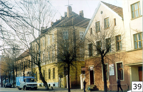 39. Старый дом, в котором родился поэт Макс фон Шенкендорф. Узкая улица справа от дома - бывшая Goldschmiede Strasse (не сохранилась). Altes Haus in dem Max von Schenkendorf geboren wurde (im Zentrum). Zur rechten Hand fuehrt alte Goldschmiede Strasse.
