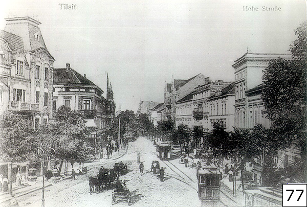 77. Улица Победы (Hohe Strasse). Со старой открытки. Третье и четвертое справа здания не сохранились. Die Hohe Strasse. Nach einer alten Ansichtskarten. Das dritte und vierte Gebaeude von rechts erhalten sich nicht.